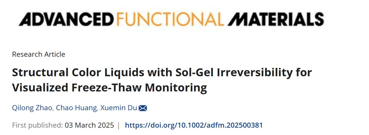 疫苗、血液制品、酶制剂等生物制品对温度极其敏感,多次冻融会严重破坏其活性。然而,现有监测技术无法直观显示冻融次数,且依赖复杂设备。3月3日,中国科学院深圳先进技术研究院智能医用材料与器械研究中心杜学敏研究员团队,在结构色液体用于冻融可视化监测方面取得重要研究进展。相关成果以“Structural color liquids with sol-gel irreversibility for visualized freeze‐thaw monitoring”为题,发表在Advanced Functional Materials。该研究发展了一种在冻融循环下会发生不可逆溶胶-凝胶转变的结构色液体,基于结构色液体的颜色变化,可精准记录冻融历史,为生物制品的质量控制提供了全新解决方案。